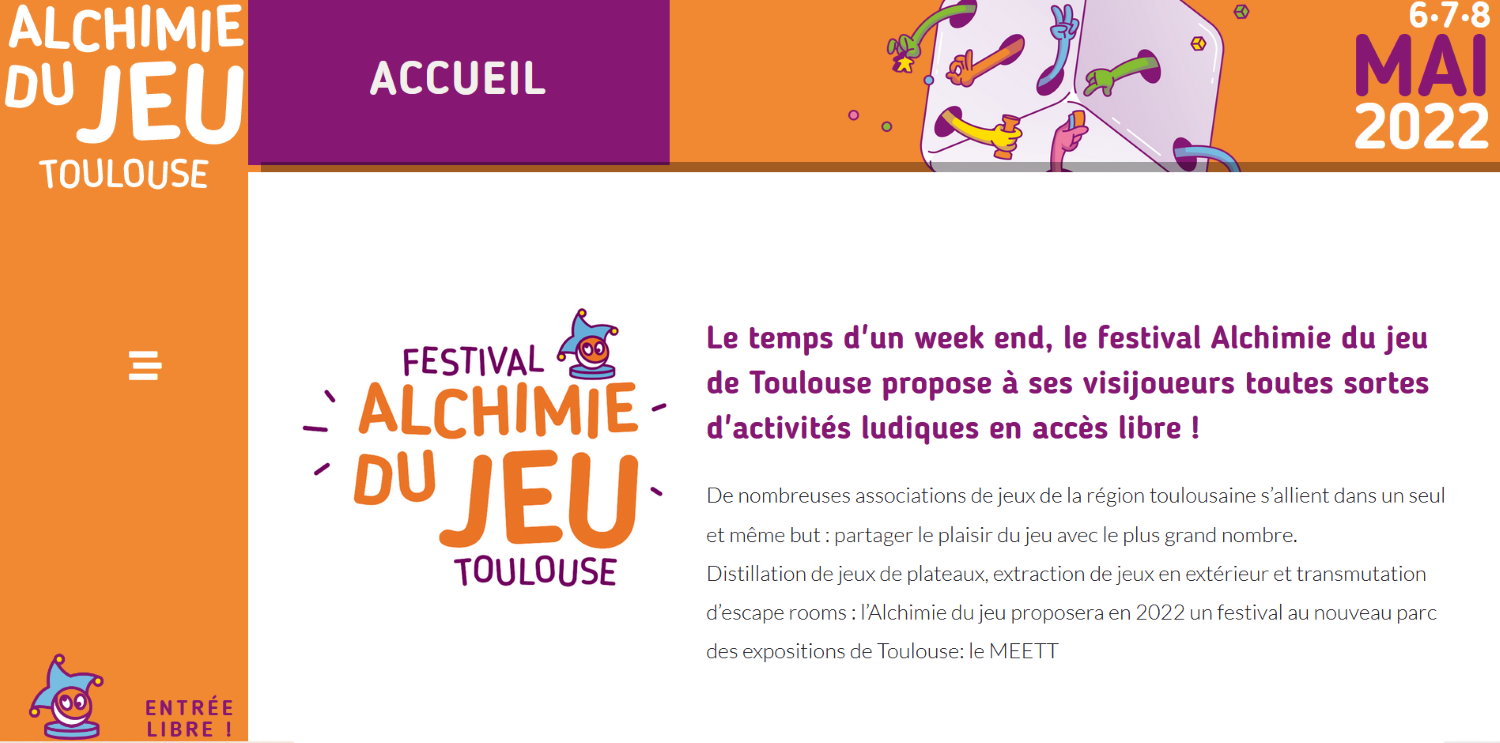 L’accès au festival est gratuit. Venez nombreux découvrir toutes sortes de jeux durant les 3 jours du festival (6, 7 et 8 mai) - https://alchimiedujeu.fr/. Le club d’échecs de Colomiers sera présent les 3 jours.